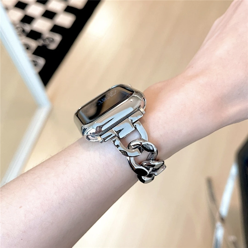 【保護ケース付き】apple watch バンド チェーン アップル ウォッチ バンド カバー 蒸れない apple watch ベルト シルバー アップル ウォッチ ウルトラ バンド